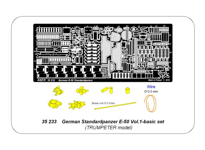Niemiecki standardowy czołg E-50 – część 1 zestaw podstawowy, zawiera wszystkie potrzebne fototrawione, toczone i frezowane części.