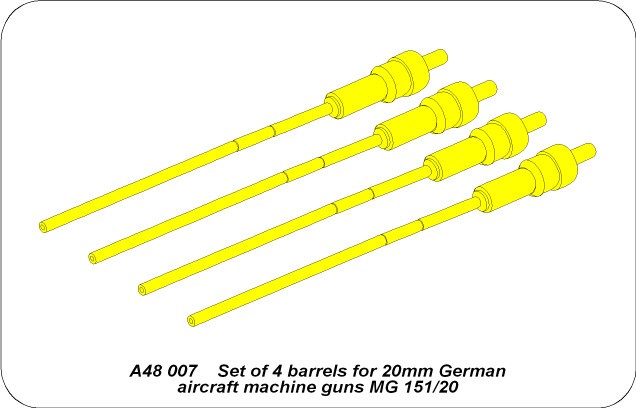 Zestaw 4 toczonych luf do niemieckich karabinów maszynowych 20mm typu MG 151/20