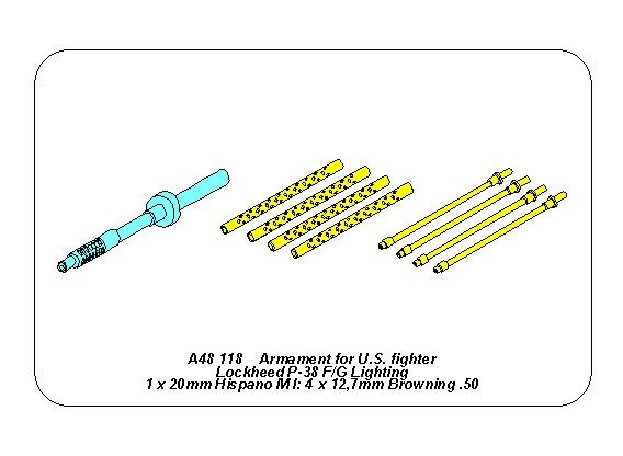 Zestaw uzbrojenia do amerykańskiego myśliwca Lockheed P-38 F/G Lighting: 1 x 20mm 4x 12,7mm