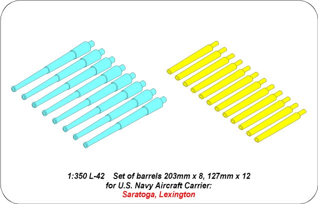 Set of barrels 203mm x 8; 127mm x 12 for Japan Navy Saratoga, Lexington