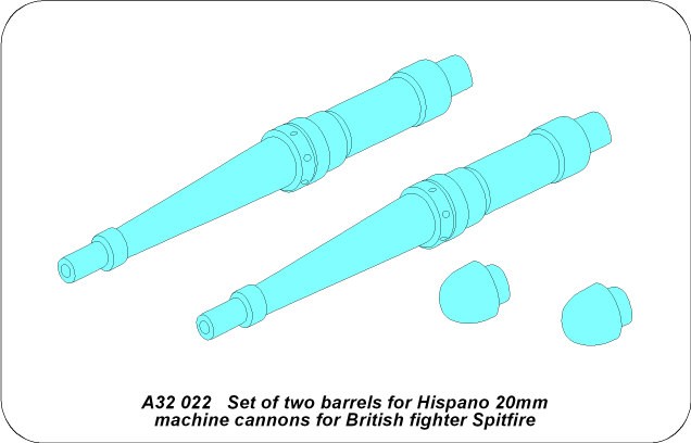 Set of two barrels for Hispano 20mm machine cannons for British fighter Spitfire